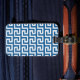 Island Blue Greek Key trellis pattern bag tag in modern colors. Distinctive luggage tag with a tough leather strap, quickly spot your bag or suitcase. Insert a business card in transit with your contact information, remove it when required for your privacy. Make your luggage easy to find with a distinctive modern business card tag.