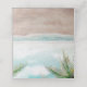 Island Breeze Painted Beach Scene, with Ocean Waves, Sandy Beach, and Palm Trees, with a beautiful teal blue sky. With Modern Typography Script Fonts. A Summer Tropical Beach, Or destination wedding design - Personalized Wedding Reception Reserved Seating Table Place Card!