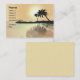 Gold and yellow colored business card with a silhouette of an island and palm trees.