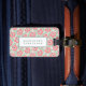 Featuring an island chic pattern of tropical Hawaiian hibiscus flowers in vibrant coral surrounded by green leaves, this personalized luggage tag features your name or monogram on the front with your full contact details on the back.