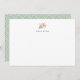 Tropical personalized stationery flat cards feature a vibrant coral hibiscus flower illustration flanked by green leaves and buds, with your name or choice of personalization beneath in modern sans-serif lettering. Cards reverse to an island chic bamboo lattice pattern in soft grass green and white.