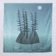 A remote island in the middle of the blue ocean with pine trees. The moon is shining on this peaceful scene, and adventure beckons! Original seascape painting by Nic Squirrell.