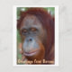 Say hello with an orangutan photograph postcard from Borneo, the 3rd largest island on our planet and home to many unique as well as endangered species . The artist is a volunteer with orangutan rescue and rehabilitation. This photograph shows a handsome male named Omry. He was stolen from his mother when he was a baby, and in the process suffered damage to his skull and eyes. To this day he has only partial vision and suffers seizures. The artist donates profits on the sale of this image to support the conservation work of Orangutan Foundation's Care Center.