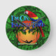 Island time is a reference to how life is on islands, people are more apt to slow down and enjoy life. Rather than the normal rat race we live in on the main land. With a colorful painted parrot and a guy flaked out in a hammock stretched between two palm trees watching the sun set over the ocean.