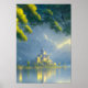 Amidst the tranquil waters of a lake, an island is crowned with a majestic castle that stands in resplendent glory. The pristine white structure is reflected in the serene waters of the lake, creating an ethereal aura that invites the viewer to lose themselves in the beauty of the moment. The idyllic surroundings, with trees and lush greenery surrounding the castle, evoke a sense of calm and serenity, making this digital art a perfect addition to any collection of wall art or home decor.