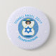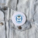 Personalized round button pin features an angel wearing the flag of Israel and flying in the center of a digitally created, textured, blue circle. The primary colors in this design are blue and white, chosen with Hanukkah in mind. Blue letters read ISRAELI ANGEL and make a space for the year and a name, allowing you to create a customized gift or personalize your look. Background is white squiggly squares. Fun stocking stuffer, especially for families of multiple religions.