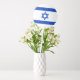 This design features the flag of Israel, is a country in the Middle East, located on the southeastern shore of the Mediterranean Sea and the northern shore of the Red Sea. It has land borders with Lebanon to the north, Syria to the northeast, Jordan on the east, the Palestinian territories of the West Bank and Gaza Strip to the east and west, respectively, and Egypt to the southwest. Israel's economic and technological center is Tel Aviv, while its seat of government is Jerusalem.