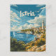 A captivating and nostalgic portrayal of Istria, a picturesque peninsula in Croatia known for its rich history, scenic landscapes, and Mediterranean charm. The design captures Istria's stunning coastline with crystal-clear waters, charming medieval towns like Rovinj, and lush green vineyards. Rendered in a vintage style, the artwork evokes the region's timeless beauty and inviting atmosphere, encouraging viewers to explore its cultural heritage and natural splendor.