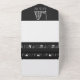 Bring touch of geeky fun to your event with this all-in-one wedding invitation and RSVP card. On the inside you will find a white graph on a deep black background above a section with some sample text that can be customized for your special day. The lower section of the invite features a removable, postcard sized piece that has some sample RSVP text sitting above an onyx black border with a pattern of Fibonacci spirals, integrals, Pi, and graphs scattered across the bottom. Outside, a similar border of mathematical symbols on black can be found below the areas where you would add stamps, standard, and return addresses for both the invitation as a whole and the returnable RSVP section. The flap used to fold over and seal the card has a single graph on a deep onyx background with a sample set of initials that you can customize for a final personal touch that shows off your love for math and each other. Be sure to check out the rest of the It Adds Up in Black set for other coordinating products, including return address labels.