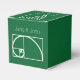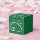 Give your guests, bridesmaids, groomsmen, or anyone else a special treat with these customizable favor boxes featuring a green background with a white graph on the top, white Fibonacci spiral on the front, and Pi on the back of the box. Each of these sides also features some sample text that you can customize for your own geeky wedding or event, and will remind them of your shared interest in math.