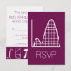 This fun and geeky RSVP card features a deep wine background and a large graph in white on the front. A wine border along the bottom edge of the card with a math-themed pattern of white integrals, Pi, graphs, and Fibonacci spirals decorates the back with some sample text in place above that can be customized to fit your needs.