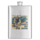 The product is a good size and came exactly as it was pictured. The lid is not attached to the flask, which could be dangerous on drunken nights... The print came out surprisingly well and looks very sharp. Would definitely recommend.