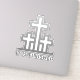 It Is Finished with 3 Crosses Custom-Cut Vinyl Sticker. Gray and White.