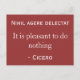 A reddish-pink postcard with a latin phrase. "It is pleasant to do nothing", by the Roman lawyer Cicero. In today's busy world it's essential to take some time out, do nothing, and relax.
