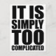 Quote: "It is Simply too complicated", in very LOUD TEXT, like some of the retro 80-ies/90-ies style vintage shirts. Works best on a white or black background, but please experiment yourselves, as the background color can be changed. Some products also allow the white outline to be switched on/off.