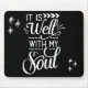 It Is Well With My Soul Christian mouse pad on a black background with white lettering. This is a gift your christian family and friends will love. This popular hymn is beloved by many churches. Your thoughtful gift will be remembered over and over. Stay inspired in your daily routine with this loving verse.