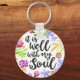 Modern hand-lettered style typography design with words, "It is Well with my soul" words from the well-known hymn. Type is surrounded by colorful watercolor flower border on all sides.