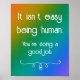 It isn't easy being a human being; you're doing a good job. Words with a digitally hand-drawn swirl and heart design on a deep rainbow colors gradient background; perfect for this item or transferring to other items on Zazzle. Customize if you wish!