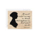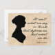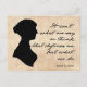"It Isn't What We Say or Think That Defines Us, But What We Do" Jane Austen quote on a Postcard. Features vintage paper background, a Jane Austen silhouette, and hand written quote from Sense and Sensibility.