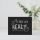 IT JUST GOT REAL Save The Date Engagement Postcard. The background can be any color (black is shown for example) Choose a color from the color picker.