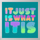 Sarcastic quote, "It just is, what it is." Vintage retro bubble text.