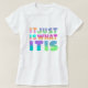 Sarcastic quote, "It just is, what it is." Vintage retro bubble text.