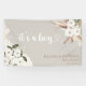 Celebrate your baby boy with this elegant It’s a Boy baby shower banner featuring warm taupe tones, soft white florals, and neutral boho styling. Personalized with the guest of honor’s name and event date, this banner creates a picture-perfect backdrop for dessert tables, welcome signs, or balloon arches. With dried grass accents and heart script, it’s a stunning focal point for rustic, modern, or botanical baby shower themes.