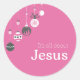 Minimalist Christian Christmas sticker featuring festive ornaments on a pink background with the message “It’s all about Jesus.” Perfect for holiday cards, gifts, journals, and faith-inspired décor.