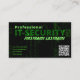 The favorite IT-Security business card for professional cybercrime and cyber security experts with elegant green matrix background showing text "Professional IT-Security" for real information technology specialists.