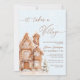 The It Takes a Village Christmas Winter Boy Baby Shower Invitation with a gingerbread house theme and a creates a charming and cozy winter wonderland scene. The invitation features a delightful, whimsical village of gingerbread houses dusted with “snow” icing, surrounded by delicate snowflakes. Each house, intricately decorated with icing, gumdrops, and tiny candy accents, represents the welcoming support of friends and family as they come together to celebrate the new baby. The color palette is soft and inviting, using neutral winter tones. It’s an invitation that promises a gathering full of warmth, love, and shared excitement amid a cozy winter scene. Matching items available.