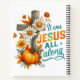 Peaceful, colorful design featuring a fall / autumn scene with a pumpkin, wooden cross, butterflies, and fall flowers. The colorful inspirational text reads: "It was Jesus all along". This design is available on a wide variety of products.