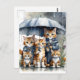 It was raining outside, so the mother cat called her children in from playing and gathered them under her umbrella. They all fit snugly under there, and were so cute that the mother couldn't help but take a picture. Even though they were wet, they were all happy to be together and warm under the umbrella.