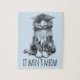 It Wasn't Meow Cute Fluffy Kitten Light Blue Jigsaw Puzzle