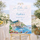 Celebrate "the sweet life" with our La Dolce Vita Amalfi Coast Welcome Sign, a hand-painted watercolor masterpiece designed for the bride who dreams of a European summer. This sign captures the sun-soaked essence of Italy’s most iconic shorelines—from the pastel-hued cliffs of Positano and the romantic gardens of Ravello to the vibrant blue grottoes of Capri. While it’s rooted in the heart of the Italian coast, the timeless aesthetic effortlessly channels the breezy, white-washed charm of Santorini, making it the perfect focal point for any Mediterranean-inspired destination event. Infused with lush bougainvillea, zesty citrus accents, and traditional Maiolica tile patterns, this illustration sets a romantic, high-end tone that tells your guests they’ve officially arrived at the chicest party of the season.