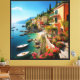 Our Italian Amalfi Coast is particularly special for wall art due to its dramatic coastal landscapes, pastel-colored cliffside houses, vibrant color palette, and serene "Dolce Far Niente" (sweet idleness) atmosphere. A 40x40-inch canvas is large enough to capture these details and create a focal point in a room. The coastal mountains plunge directly into the Mediterranean Sea, creating a stunning vertical landscape of crags, lush vegetation, and terraced gardens. The sparkling blue and turquoise waters provide a vibrant and calming contrast to the land and a romantic