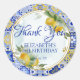 Italian Blue Gold Tile Lemons Script Thank You Classic Round Sticker
