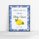 Italian Blue Tile Lemon Baby Shower Welcome Poster