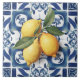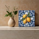 Italian ceramic tile lemon background, Mediterranean kitchen decor tile, Sicilian majolica tile with lemons, traditional blue and white ceramic pattern, Amalfi coast kitchen inspiration, decorative lemon tile design, rustic Italian backsplash mockup, lemon fruit on majolica tile art, hand-painted ceramic tile with lemons, Mediterranean citrus kitchen aesthetic
