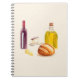 A simple, rustic design of traditional countryside products of wine, olive oil, and cheese.