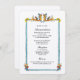 Elegant Italian wedding details card featuring hand painted watercolor vintage Italian pottery pattern in Terra-cotta, gold and blues.
