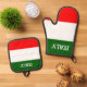 Italian Flag Design Oven Mitt and Pot Holder Set with customizable text.