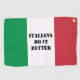 Italian flag of Italy custom golf towel gift. Personalized golfing presents for him or her. Unique Tricolore golf gifts for men and women. Create fun Christmas and Birthday presents for golfer, husband, dad, father, friend, co worker, boss, colleague, coach, instructor, trainer, teacher, grandpa, retired person, golf lover, player, tournament etc. Including hook to hang it up. Unique golf player accessories for friends and family. Italian pride. Also great for Father's Day. Add your own name, funny quote or monogram. Italians do it better!