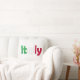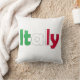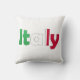 Accent your home with the Italian Flag! This patriotic, 100% cotton throw pillow prominently features the word "Italy" written in the colors of the flag of Italy on the front and back.