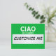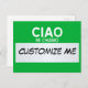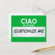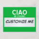 This customizable product features a green "Hello My Name Is ..." name tag sticker in Italian.