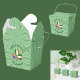 Personalized take out favor boxes feature the flags of Italy, Ireland, and United States of America (USA) are found in the leaves of this shamrock, designed to celebrate St. Patrick's Day, 4th of July, and Italian holidays. It sits on a background of light green squiggly squares. Above are the words THREE CULTURES. Below, ONE YOURNAME. Words are in dark green, Celtic style, circular letters. Add a name in the appropriate place for a personalized look.