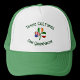 Personalized trucker hat.festures the flags of Italy, Ireland, and United States of America (USA) in the leaves of this shamrock, designed to celebrate St. Patrick's Day, 4th of July, and Italian holidays. Above are the words THREE CULTURES. Below, ONE YOURNAME. Words are in dark green, Celtic style, circular letters. Add your name in the appropriate place for a personalized look. Need a customized gift? Just add someone else's name.