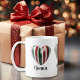 a stunning white mug that's more than just a simple cup—it's a work of art. Adorning this mug is a 3D, rounded, and brilliantly shining heart, beautifully striped in the vibrant colors of the Italian flag: green, white, and red. The effect is reminiscent of a festive Christmas ornament, radiating the warmth and joy of the holiday season.