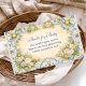 An elegant Italian-inspired baby shower design featuring a decorative lemon and floral border with ornate Mediterranean tile details. Soft blues, warm ivory tones, and hand-painted botanical elements create a refined European garden aesthetic reminiscent of classic Italian villas. Perfect for lemon, Amalfi Coast, or old-world Mediterranean themed celebrations with a timeless, romantic feel.