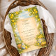 A sun-washed Italian lemon garden scene inspired by the Amalfi Coast, featuring lush citrus trees, hand-painted ceramic pots, and a romantic Mediterranean courtyard backdrop. Warm golden yellows, soft greenery, and aged parchment textures create an elegant old-world aesthetic with a fresh, joyful feel. Ideal for Italian, citrus, or European garden-themed baby celebrations with a timeless, painterly look.