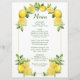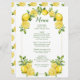 Wedding menu with lemons and greenery. Perfect for a spring summer wedding. The words can be changed to suit your own details or requirement